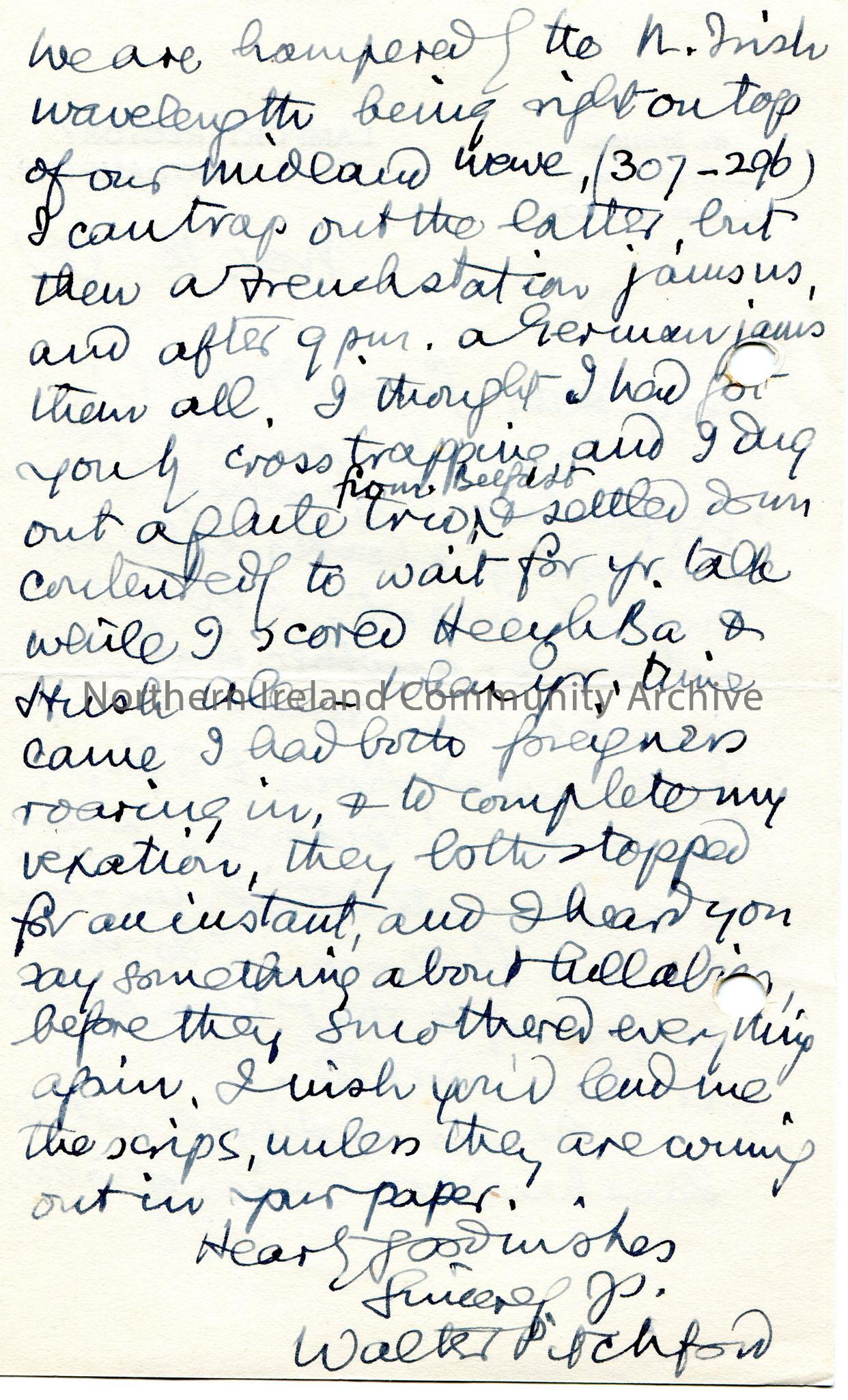 Handwritten letter (double sided) to Mr Henry. Thanks Sam for the ‘Apprentice Boy’. Discusses the melody of the song. Mortified not to have heard Sam’… – scan043b