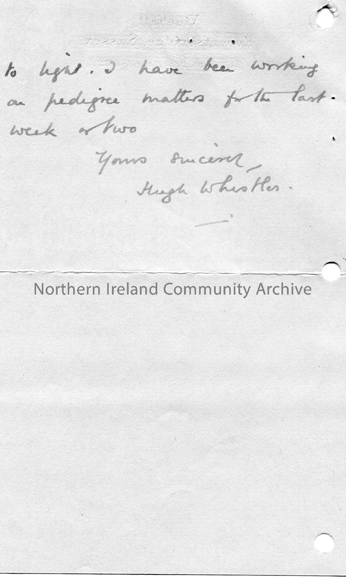 Handwritten letter (double sided) to Sam Henry. Thanks Sam for his letter and enclosure of Windsor Herald. He is not willing to spend a guinea on a se… – scan011b
