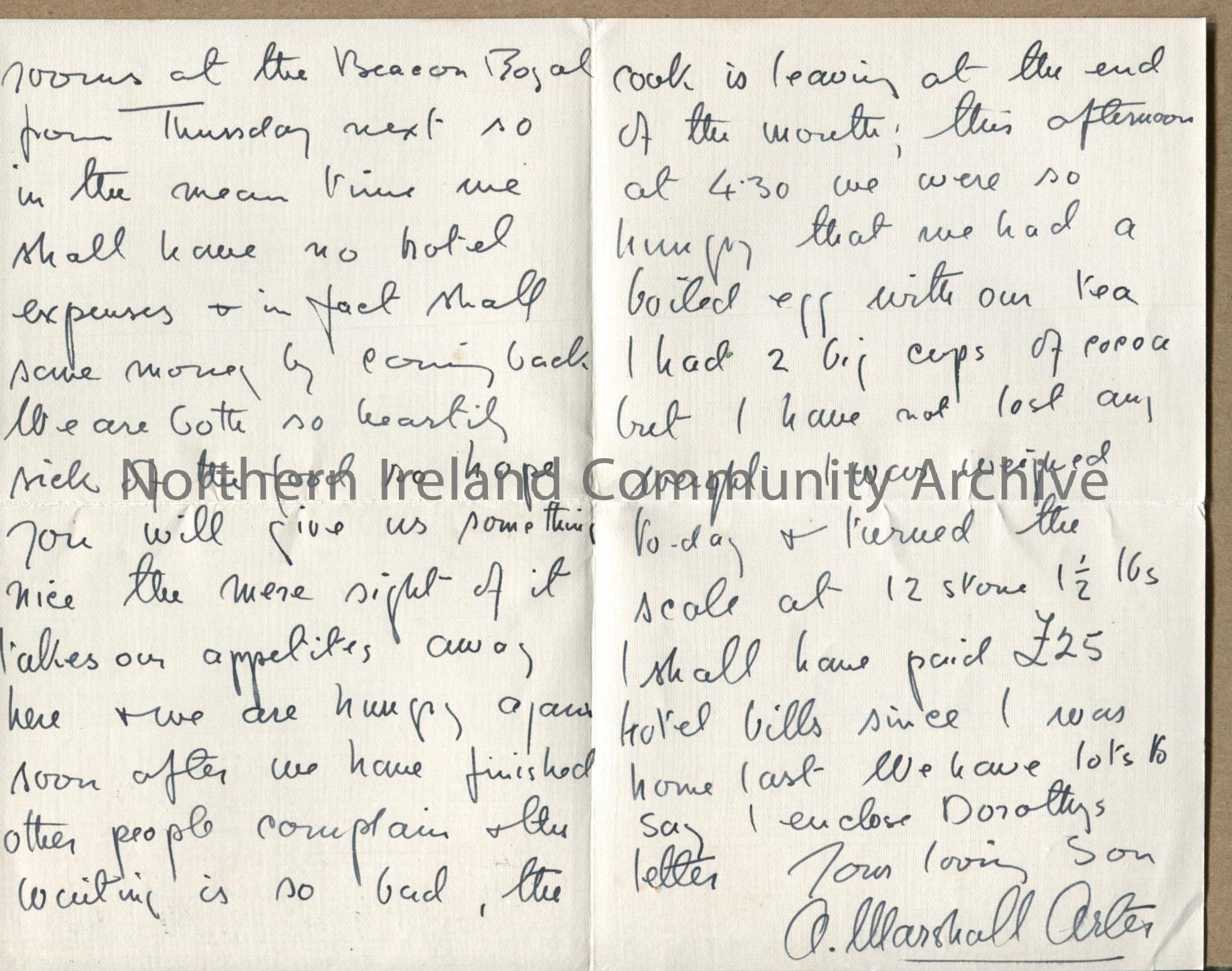 Handwritten letter, edged in black for mourning, from A Marshall Arter (Dorothy’s brother Bertie) to their mother. They are leaving the Pembroke Hotel… – img100b