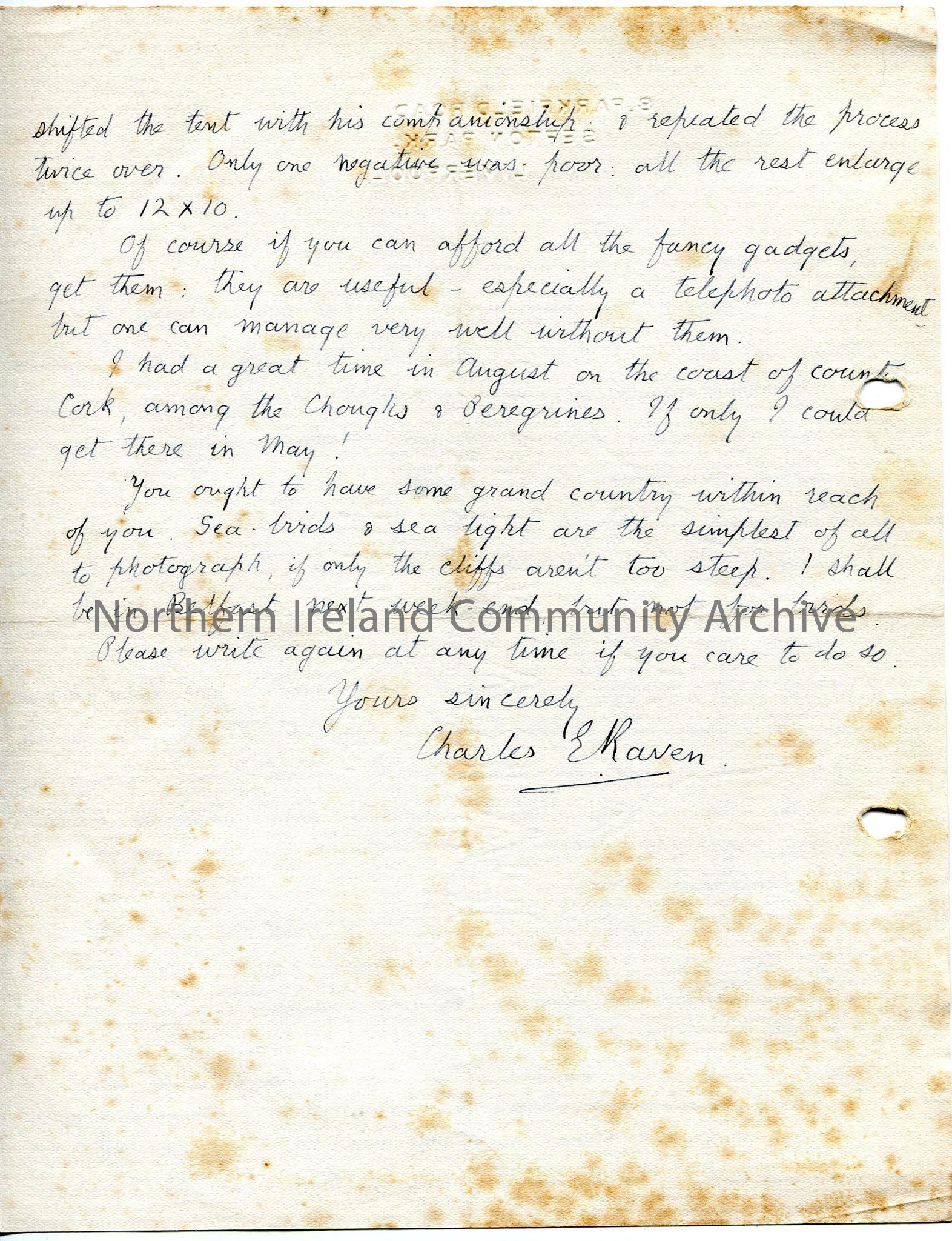 Handwritten letter, exchanging tips on cameras, lens, technique. – img041b