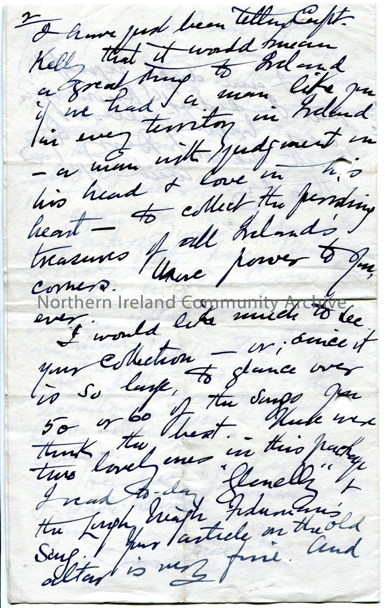 Handwritten letter (folded and written on four sides) to Sam Henry. He has been enjoying reading Sam's pieces in the Constitution and praises the work he does. Wishes to view Sam's collection of songs one day.