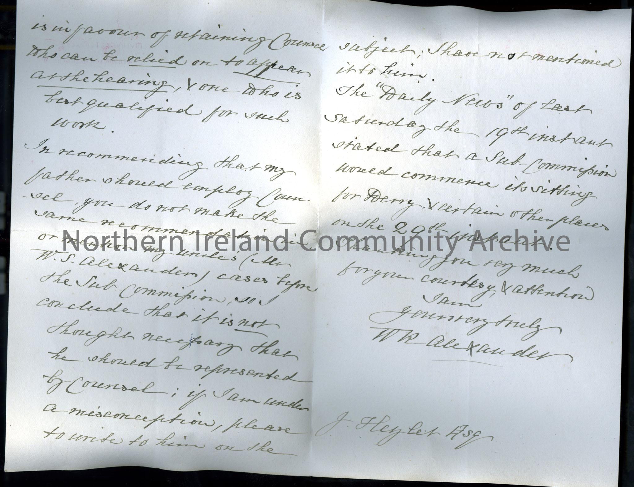 Handwritten letter from Mr. Hezlet to ‘Robert Murdoch Esq’ re. ‘the Waterford Estate’. Hezlet states that his father has instructed him to confirm his… – scan481b