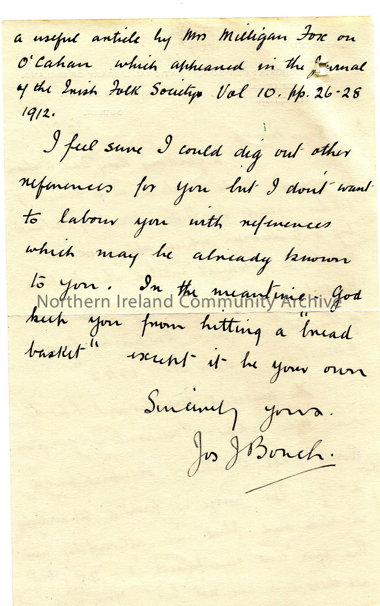 Handwritten letter from National Library of Ireland with Rory Dall O’Cahan reference sources – img510