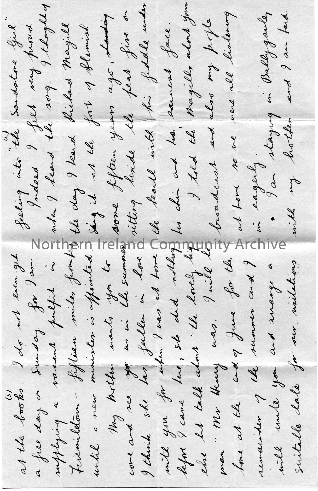 Handwritten letter from S. I. Knox to Sam Henry congratulating him on a broadcast the previous evening. Particular reference to ‘The Sandstone Girl’. … – img023b