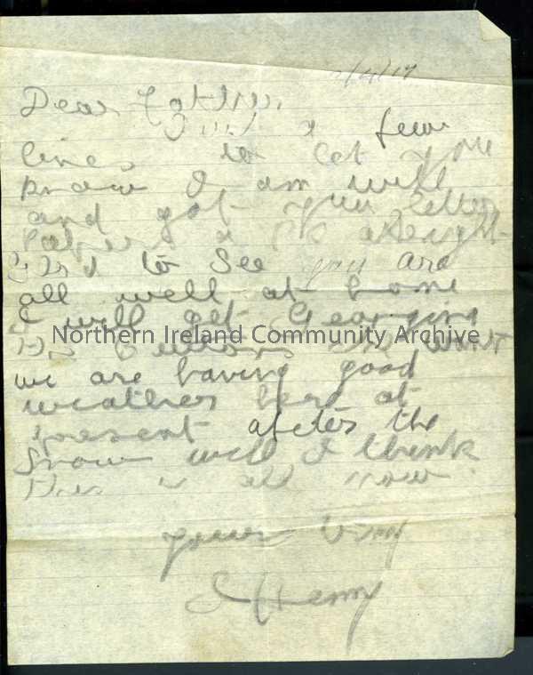 Handwritten letter in pencil from James to his father. Mentions Georgina – will get buttons she wants