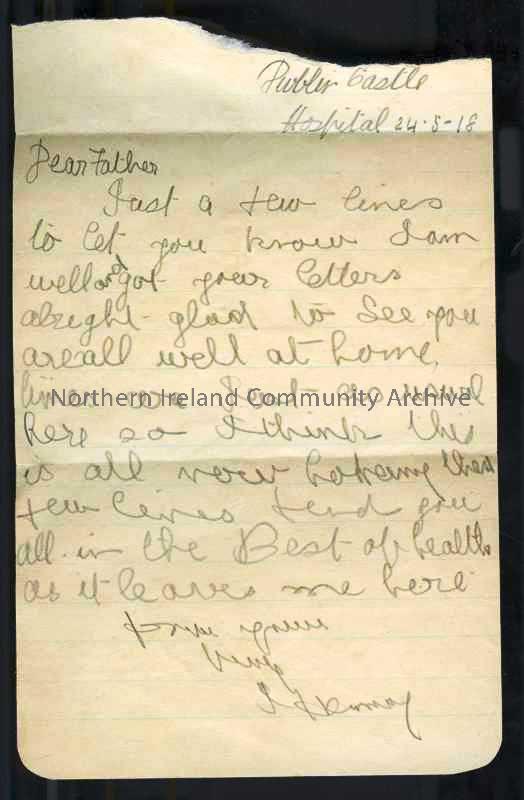Handwritten letter in pencil from James to his father