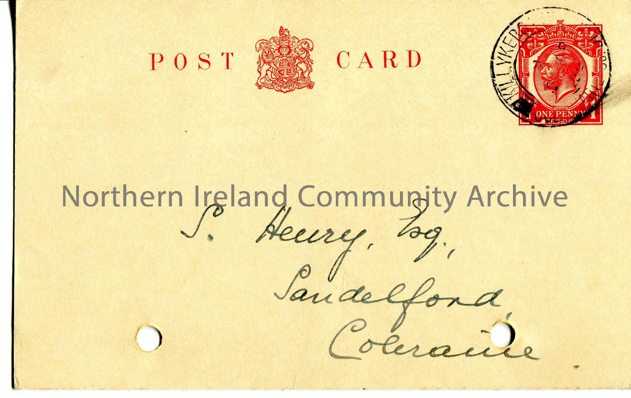 Handwritten letter on blank postcard re Perry and Renton family history – img029b