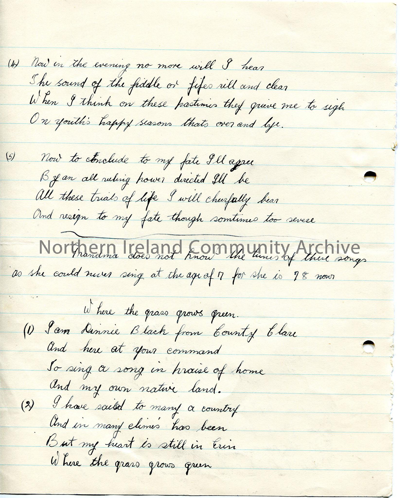 Handwritten letter on double page, with words to song about Knocklayde and information about birds nest and eggs. – img752