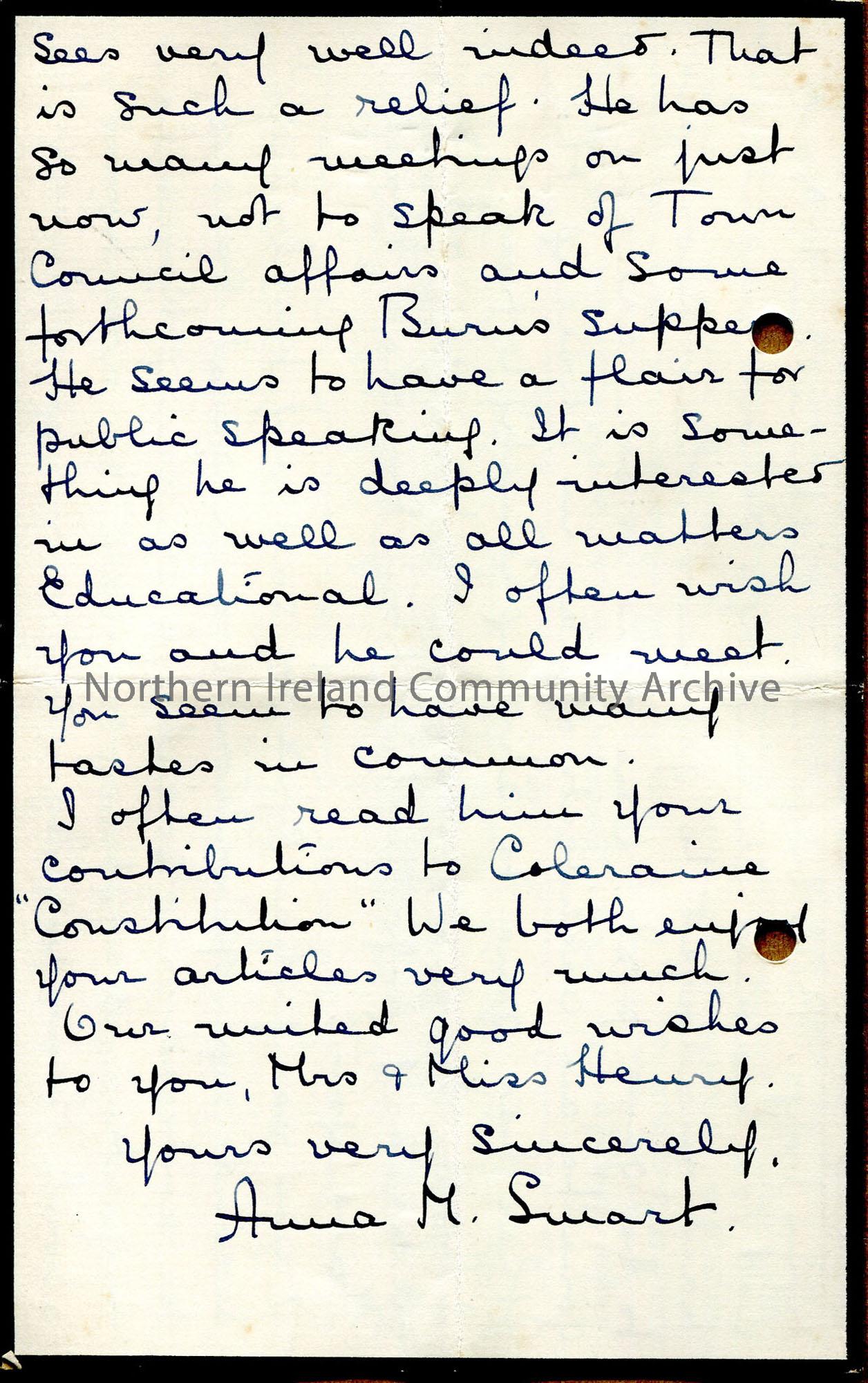 Handwritten letter, single fold with all sides used. Edged in black for mourning – Anna Smart’s sister has died. Family news. – img711