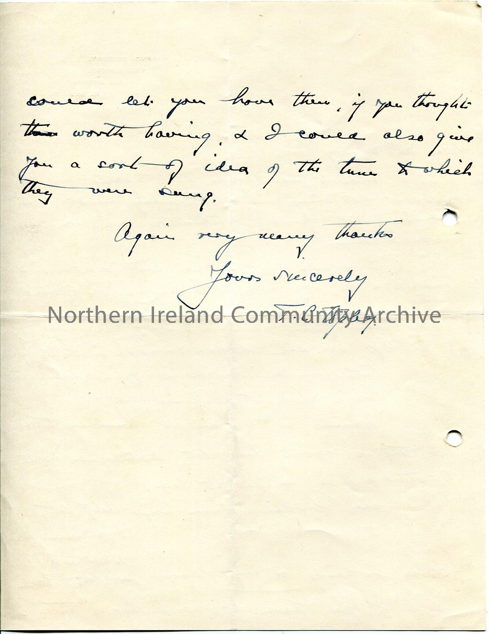 Handwritten letter thanking Sam for help and offering words to 2 folk songs. – img809