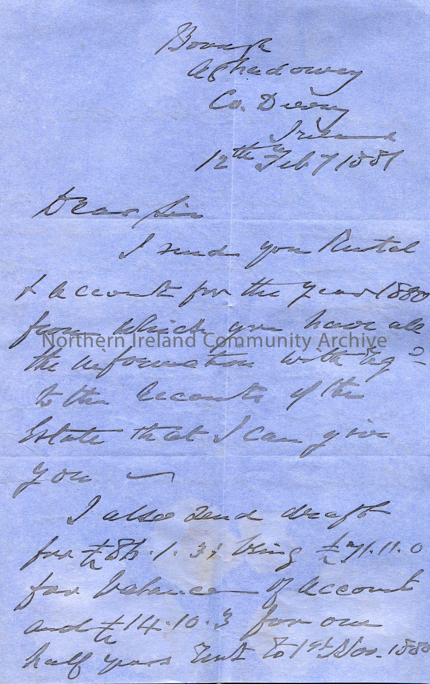 Handwritten letter to 'Dear Sir'. Is sending information re accounts. They did not mean to cause offence in a previous letter sent. Mentions kind words of their father. Declare that they no longer wish to act as the recipients agent due to the latest letters he has been sent.