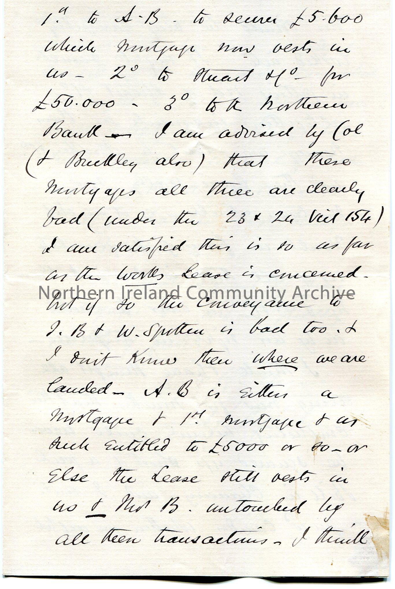 Handwritten letter to John. (Folded and written on four sides). Writing re a number of property and mortgages which are not straightforward. – scan014b