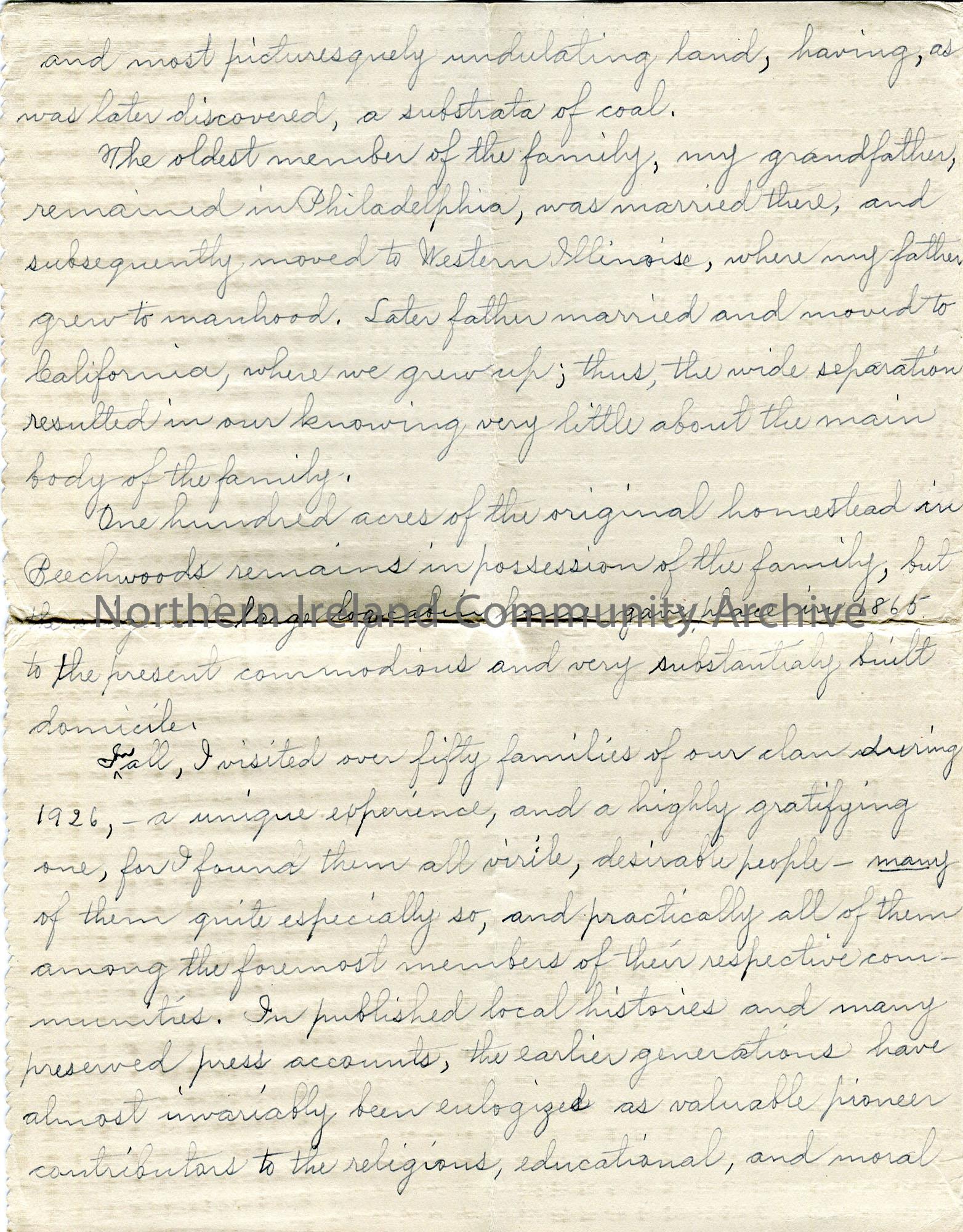 Handwritten letter to Sam Henry from Anna Dorothy M’Clatchie. Gives details about their family history in America and links with Ulster. … – scan082b