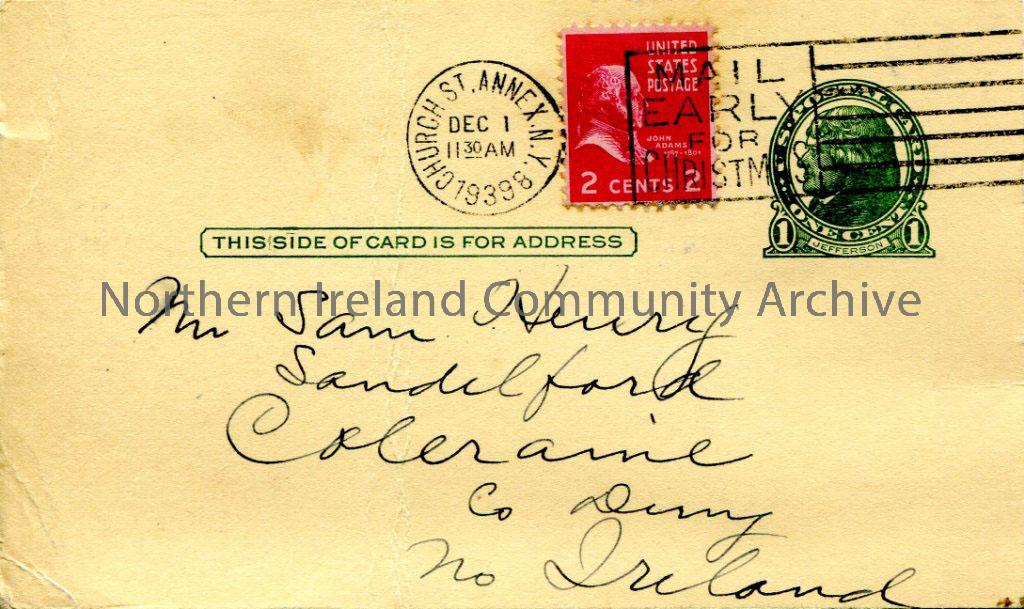 Handwritten message by postcard – brief note re Fullerton family members – img012