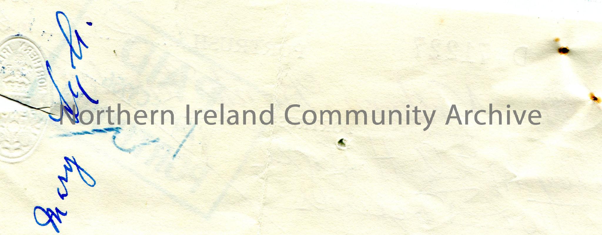 Handwritten Northern Bank Limited, Portrush branch cheque, no 71227. Payable to Mrs G. H. Lyle from Emily M. Hezlet for £2.0.0. Dated 17th Decemb… – scan307b