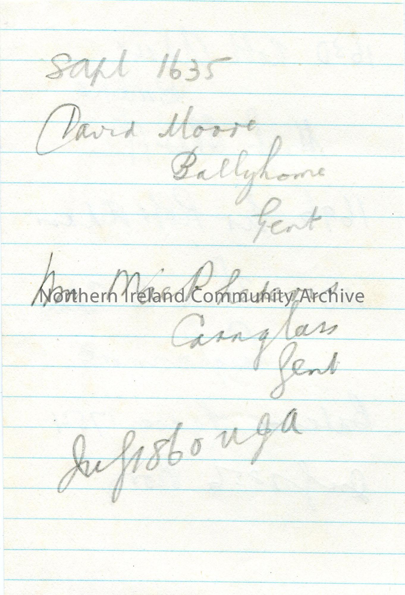Handwritten notes in pencil. Mentions persons with surname Adair and Moore. – scan051b