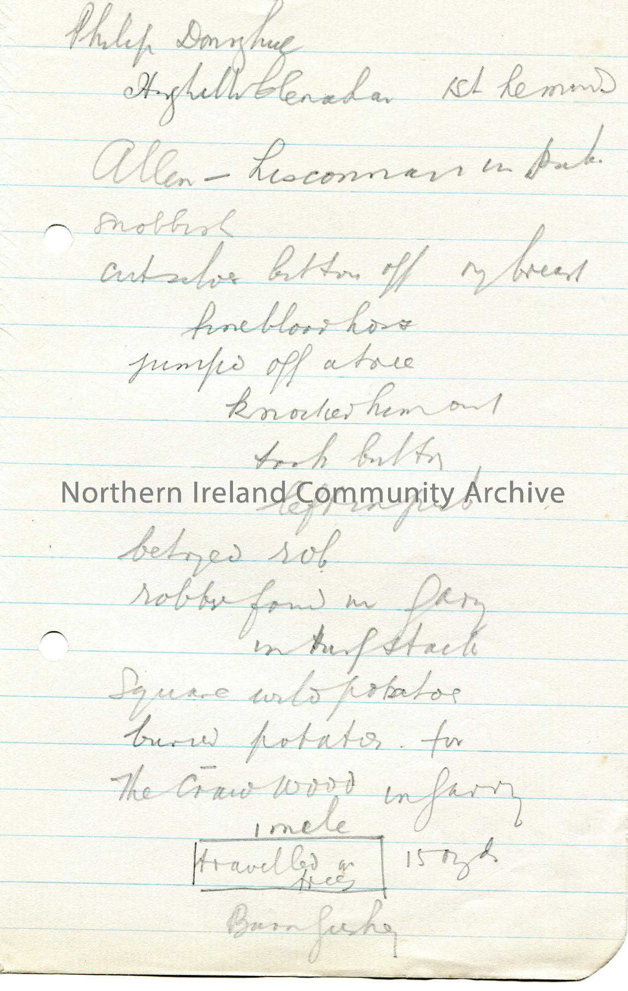Handwritten notes in pencil on lined paper re [Samuel] Allen of Lisconnan.
