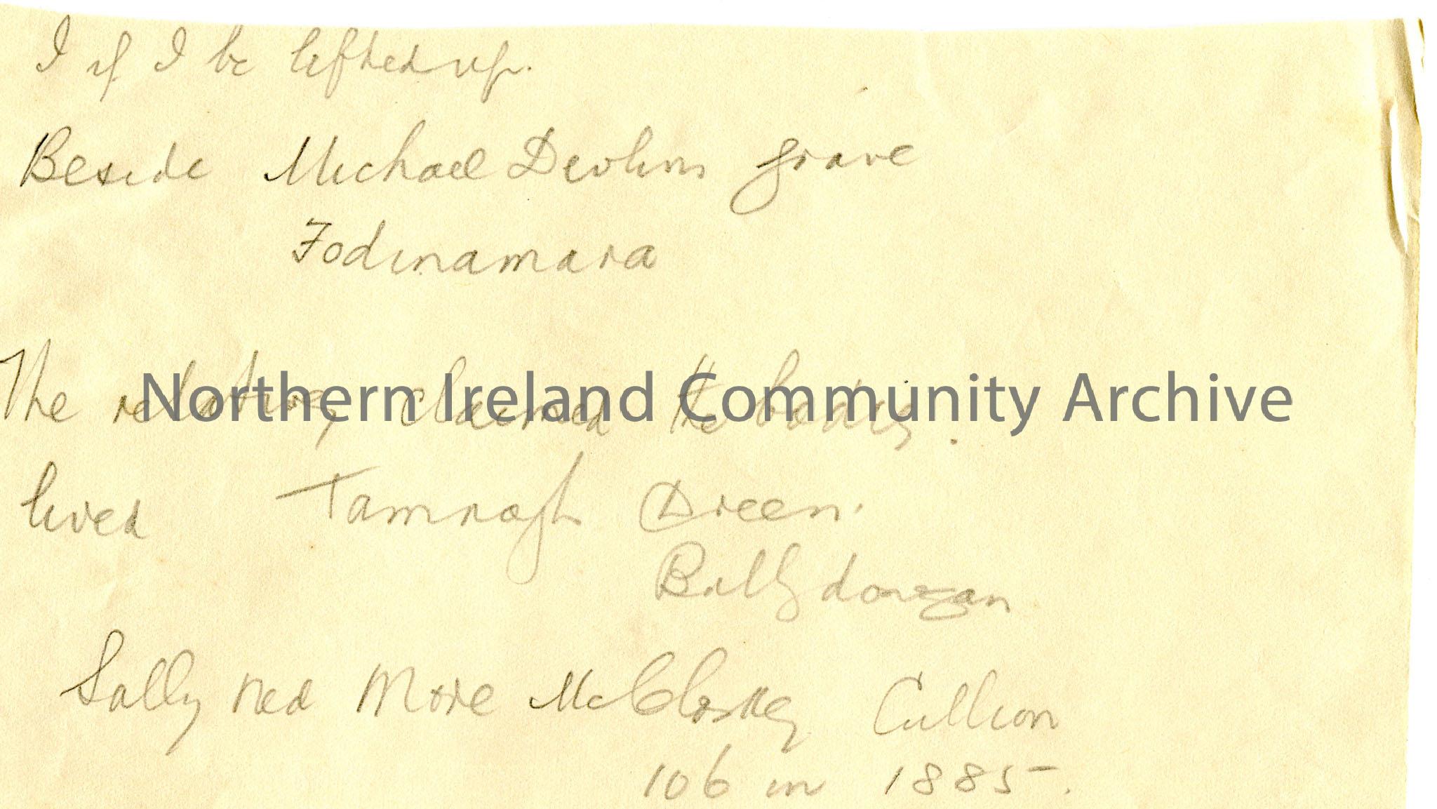 Handwritten notes in pencil re Michael Devlin, Sally Ned More McCloskey Cullion.