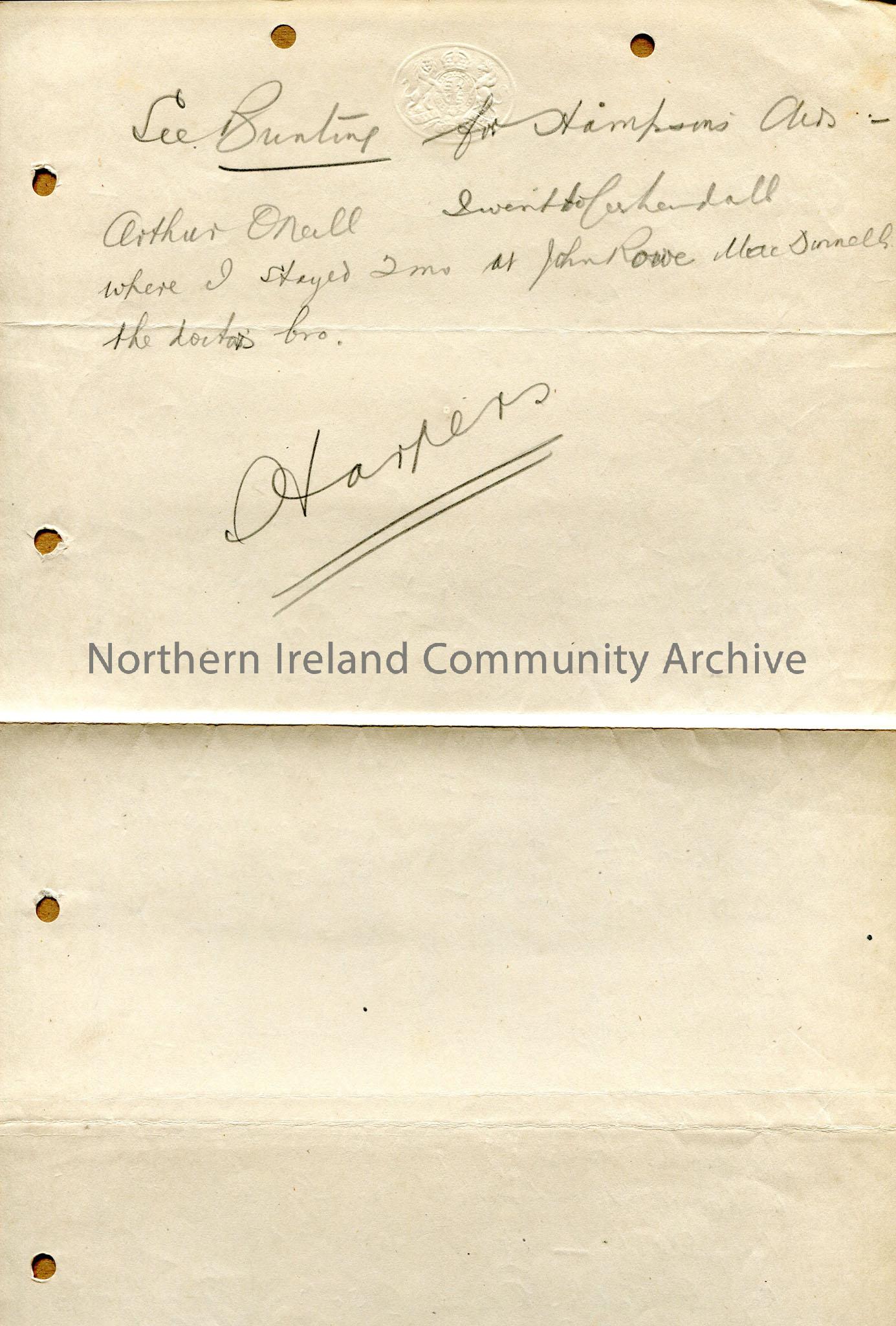 Handwritten notes in pencil re Rory Dall O’Cahan. Mentions Coleraine, Garvagh, Scotland. – img407