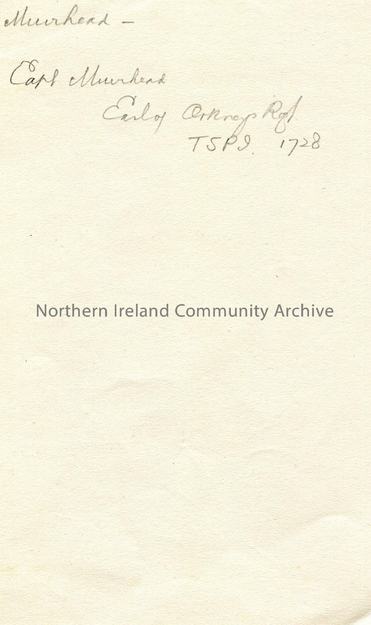 Handwritten notes not in context. Mentions Muirhead; Earl of Orkneys.