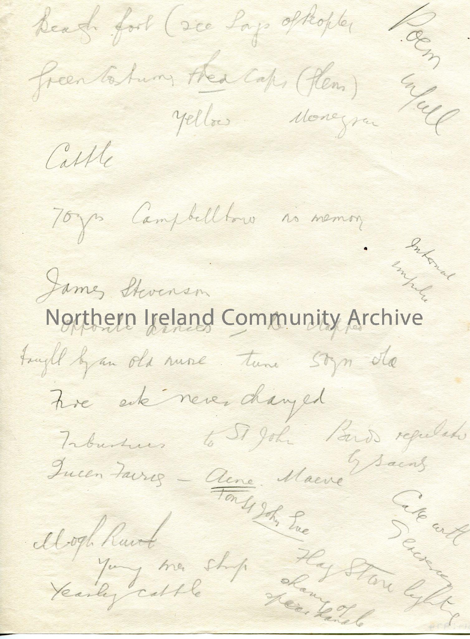 Handwritten notes, not in context. Mentions ‘Songs of the People’ and James Stevenson.