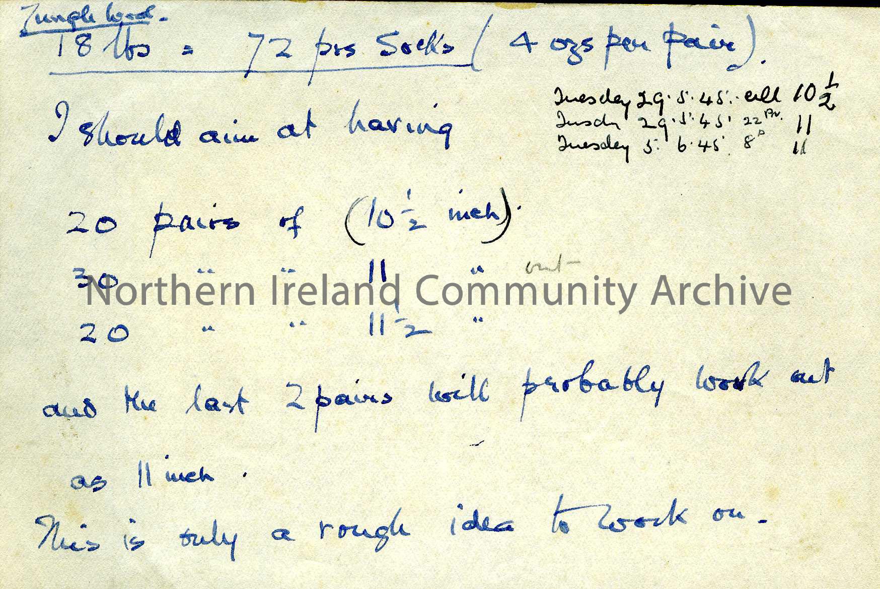 Handwritten notes on scraps and small pieces of paper. All related to knitting and includes a list of ladies who are knitting for members of the servi… – 192H
