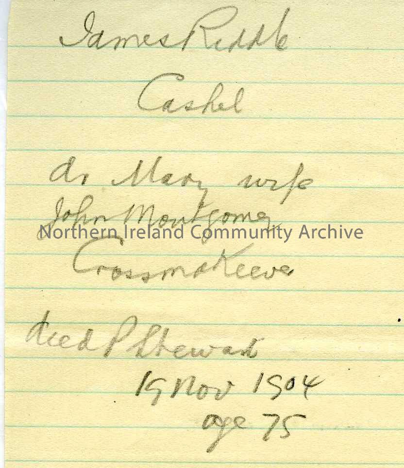 handwritten notes re a James Riddle