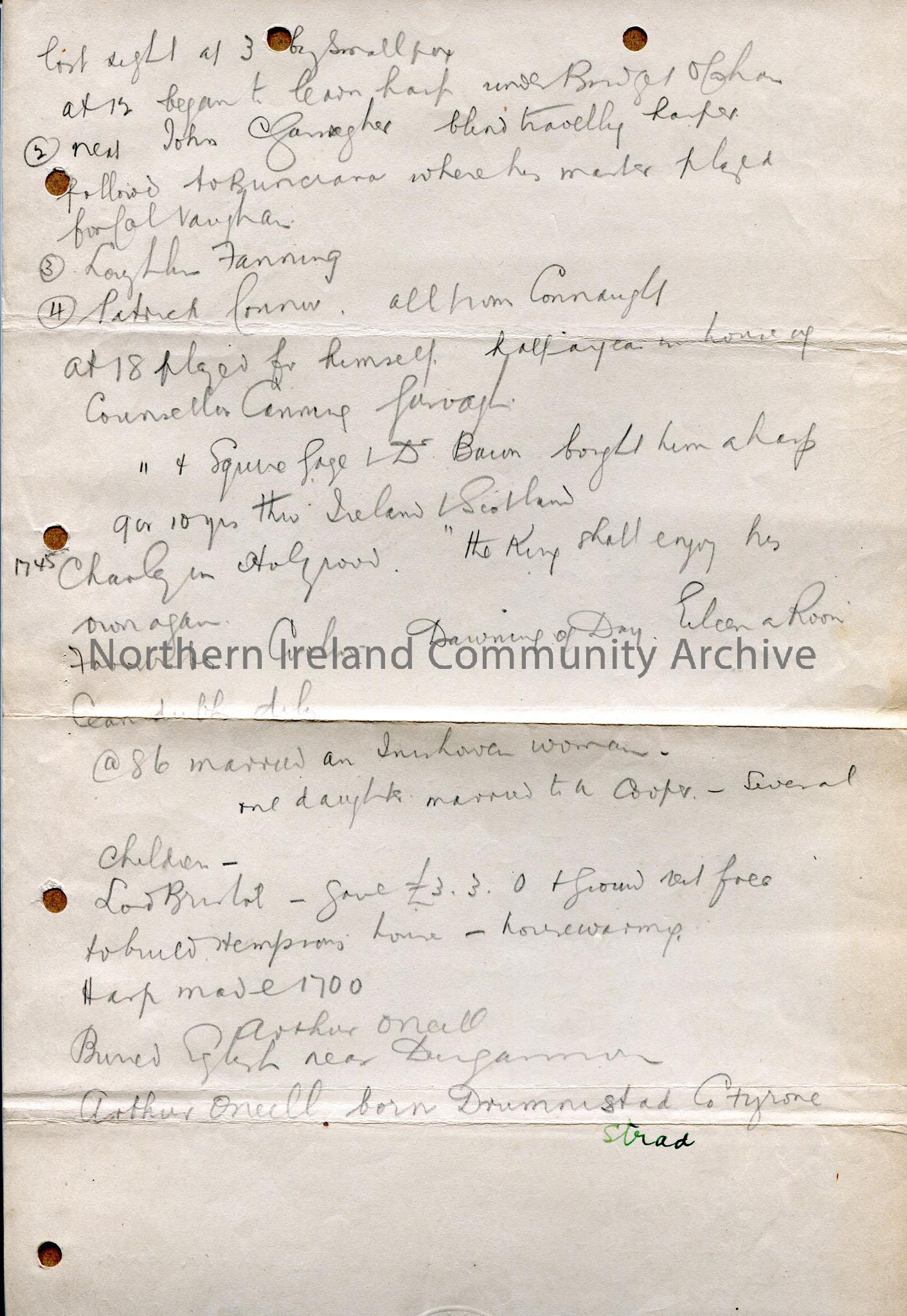 Handwritten notes re various harpers, including...