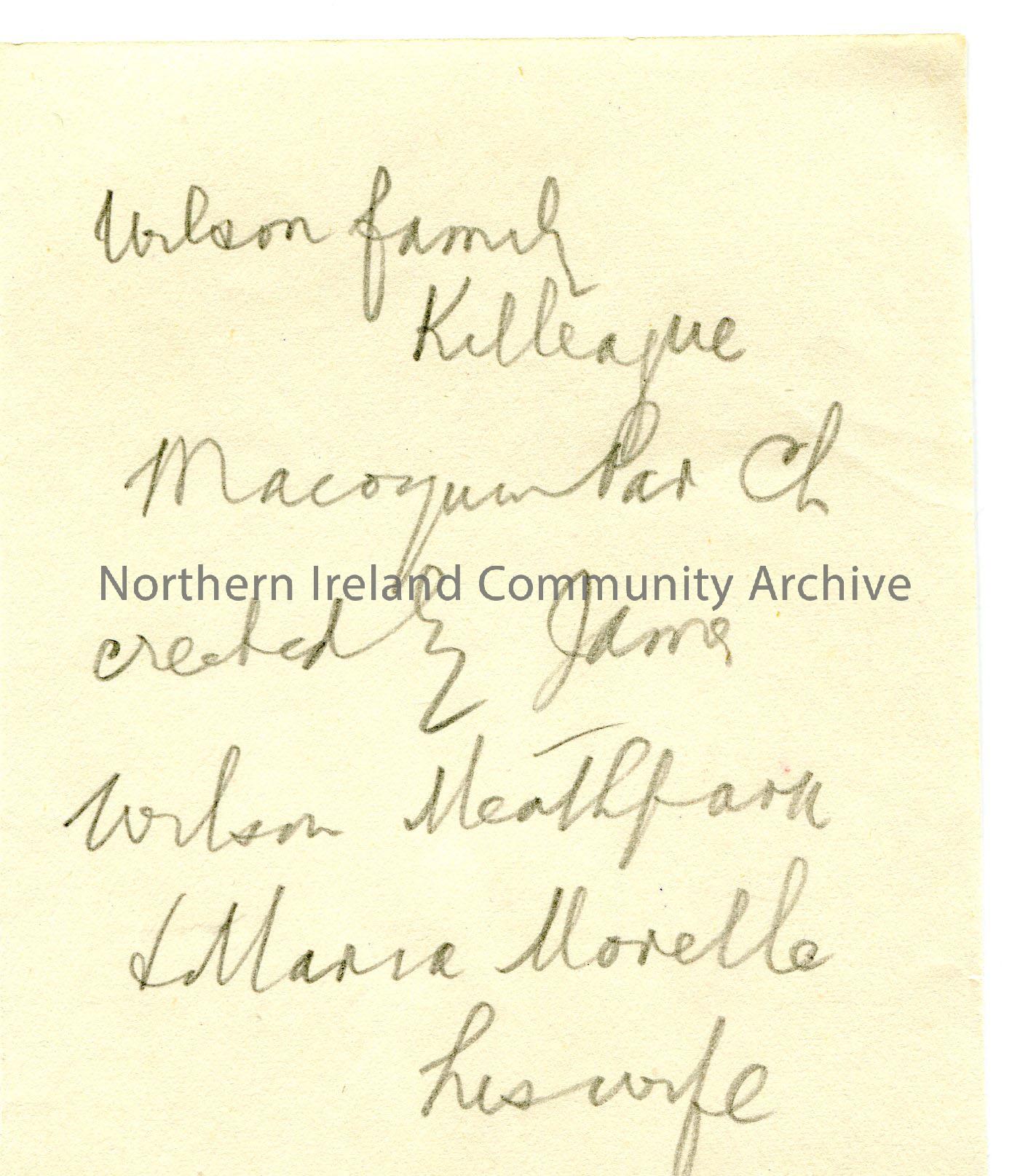 Handwritten notes re Wilson family, of genealogical interest.