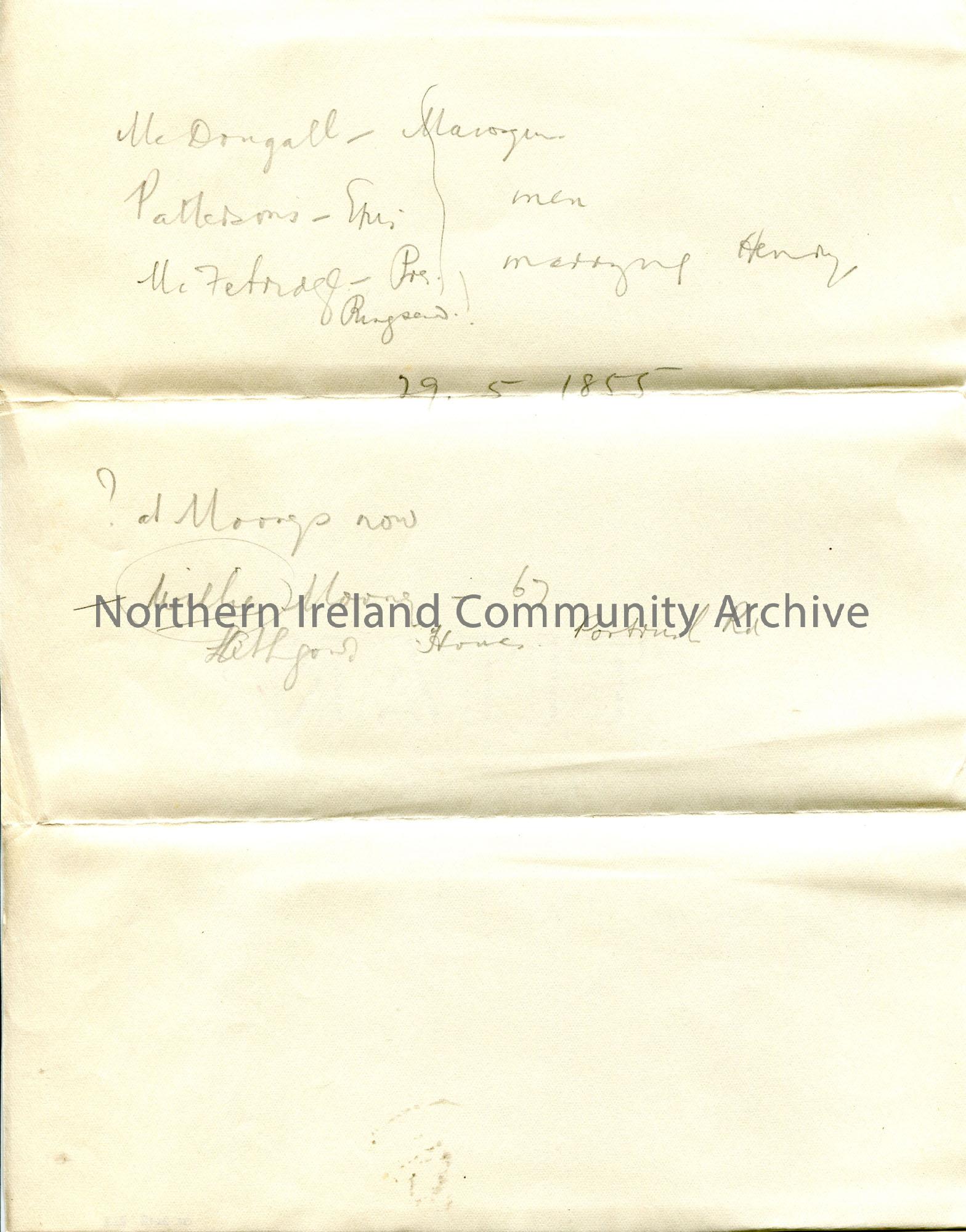 Handwritten (pencil) notes for family history research on surname Henry of Coleraine.
