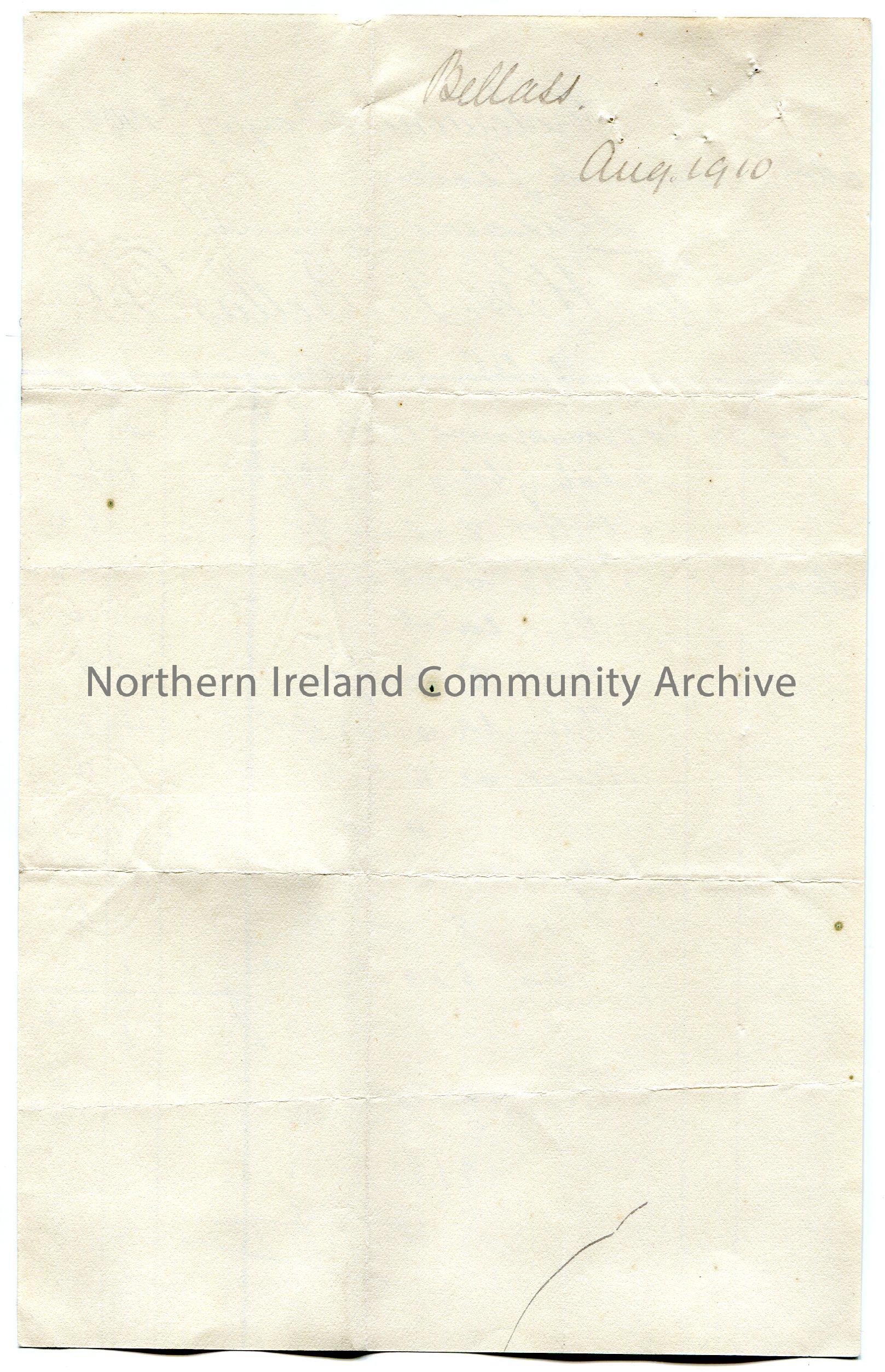 Handwritten receipt dated 17th May, 1910, for payment by Mr Samuel Lecky, Adelaide Avenue, to H & T Bellas, Coleraine, for sum of £0.17.1 1/2 for… – scan140b