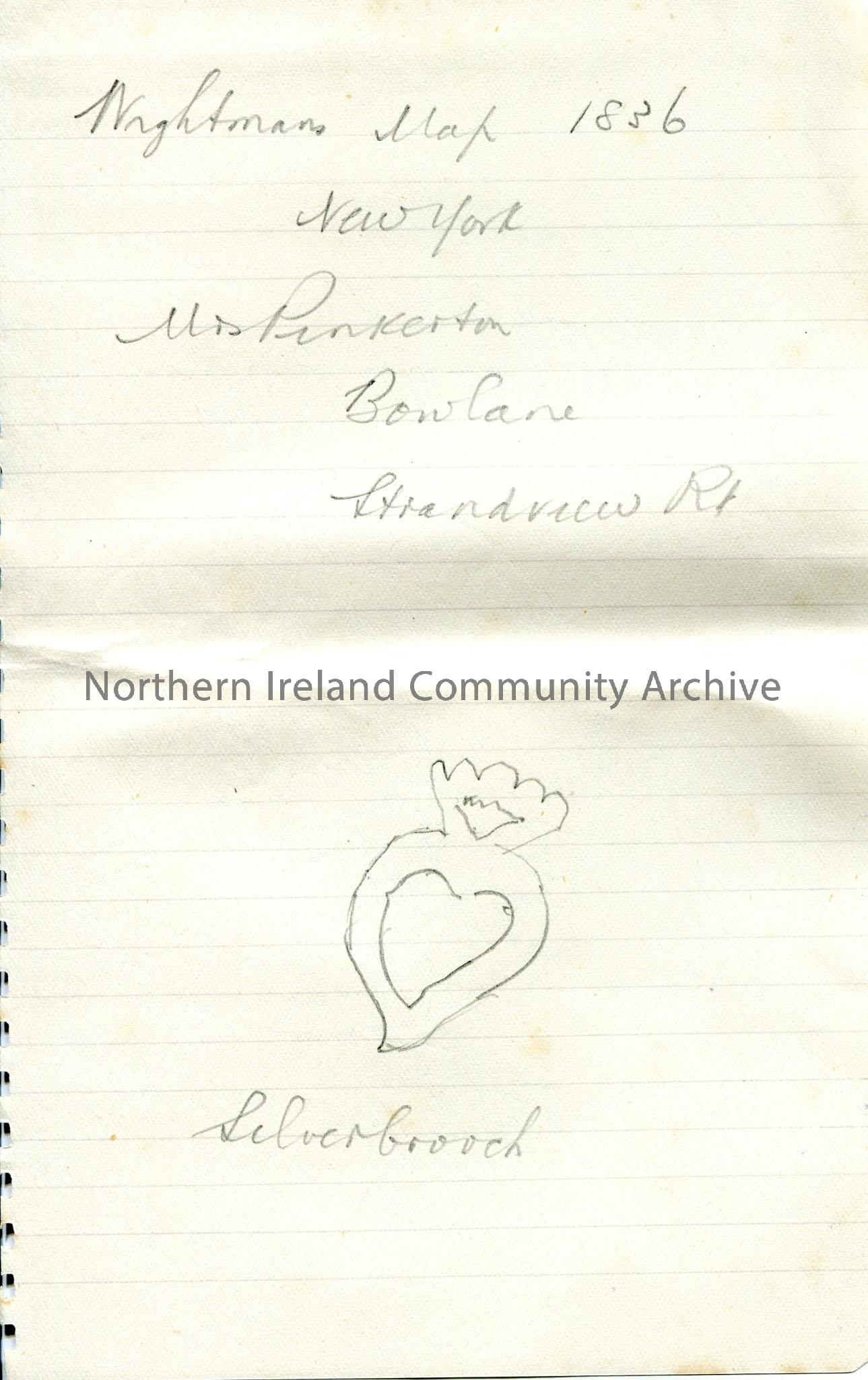 Handwritten rough disconnected brief notes – drawing of silver brooch