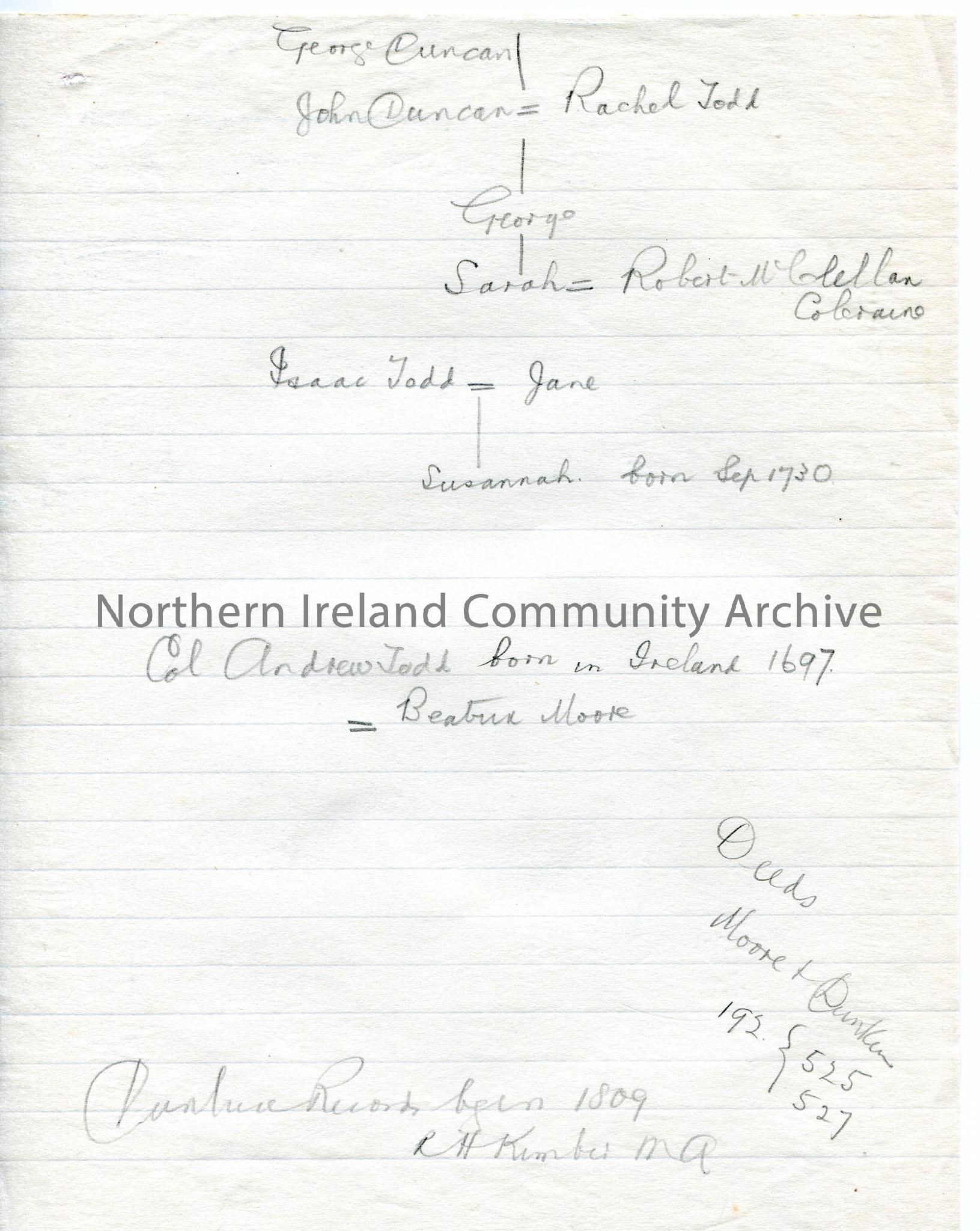 Handwritten rough notes – family line of Duncans and Todds