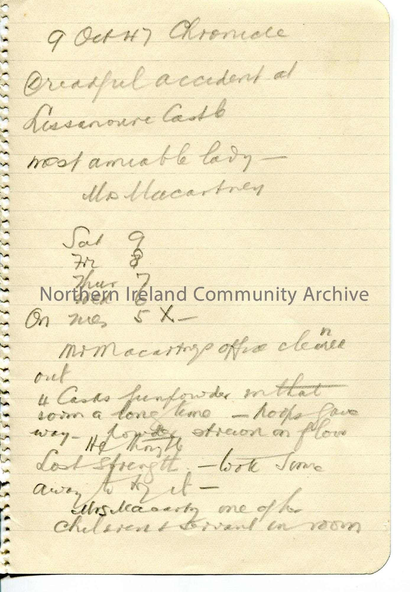 Handwritten rough notes – fatal blast at Lissanoure