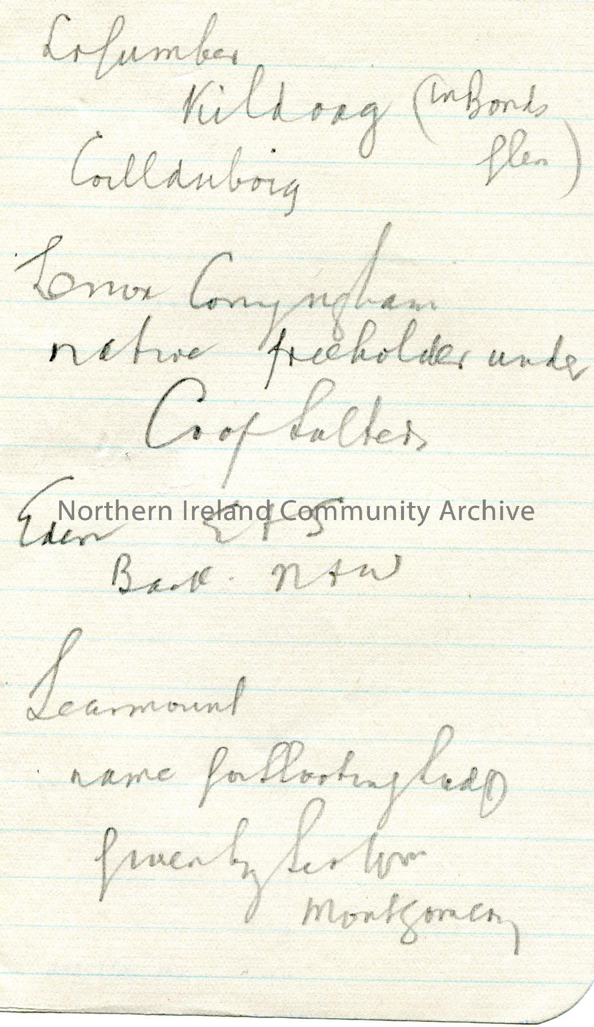 Handwritten rough notes, not in context, on page in pencil. Re Kildoag; Learmont.