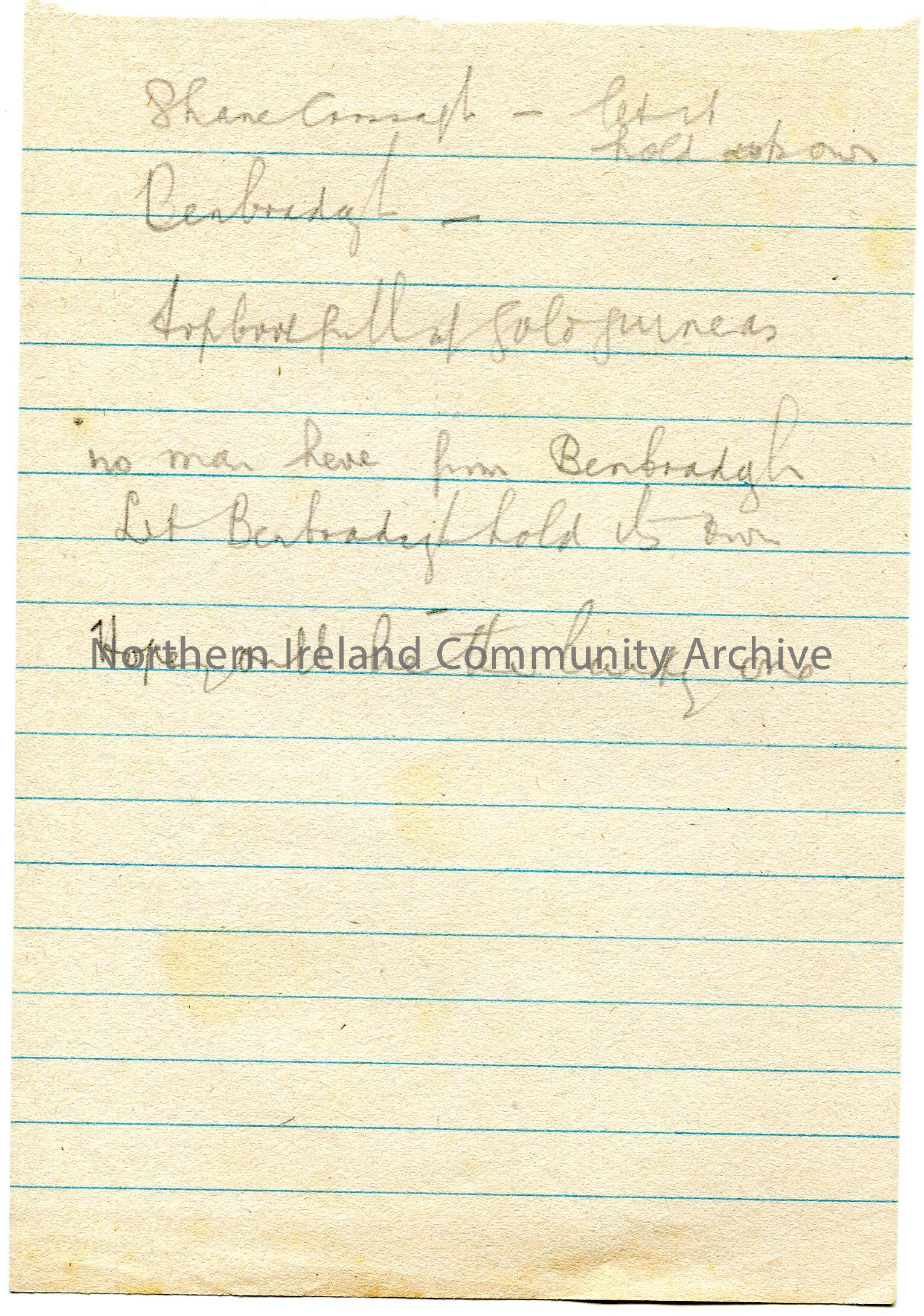Handwritten rough notes on lined paper. Mentions Shane Crossagh.
