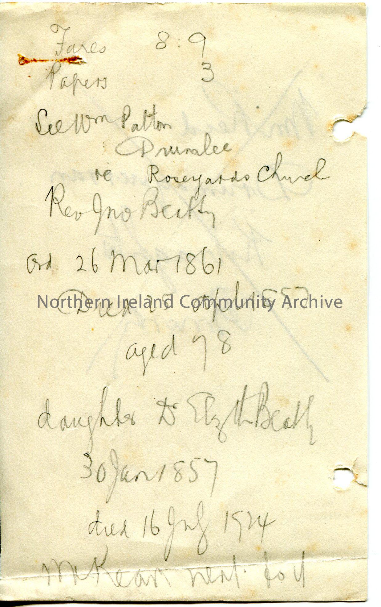 Handwritten rough notes re Beatty family