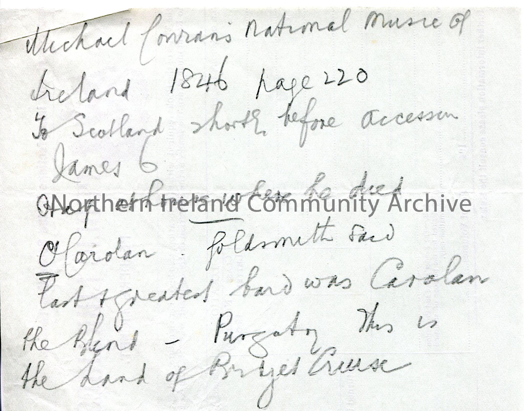 Handwritten rough notes re Carolan