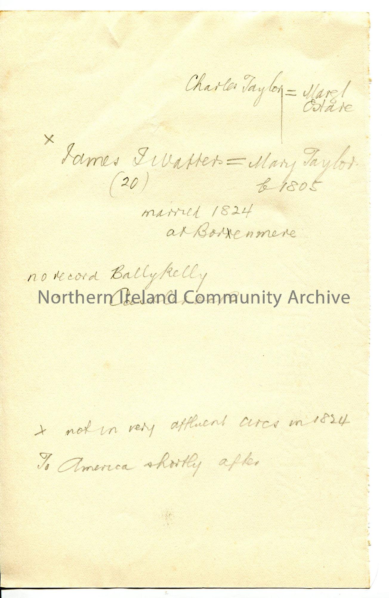 Handwritten rough notes re Watters and Taylor families