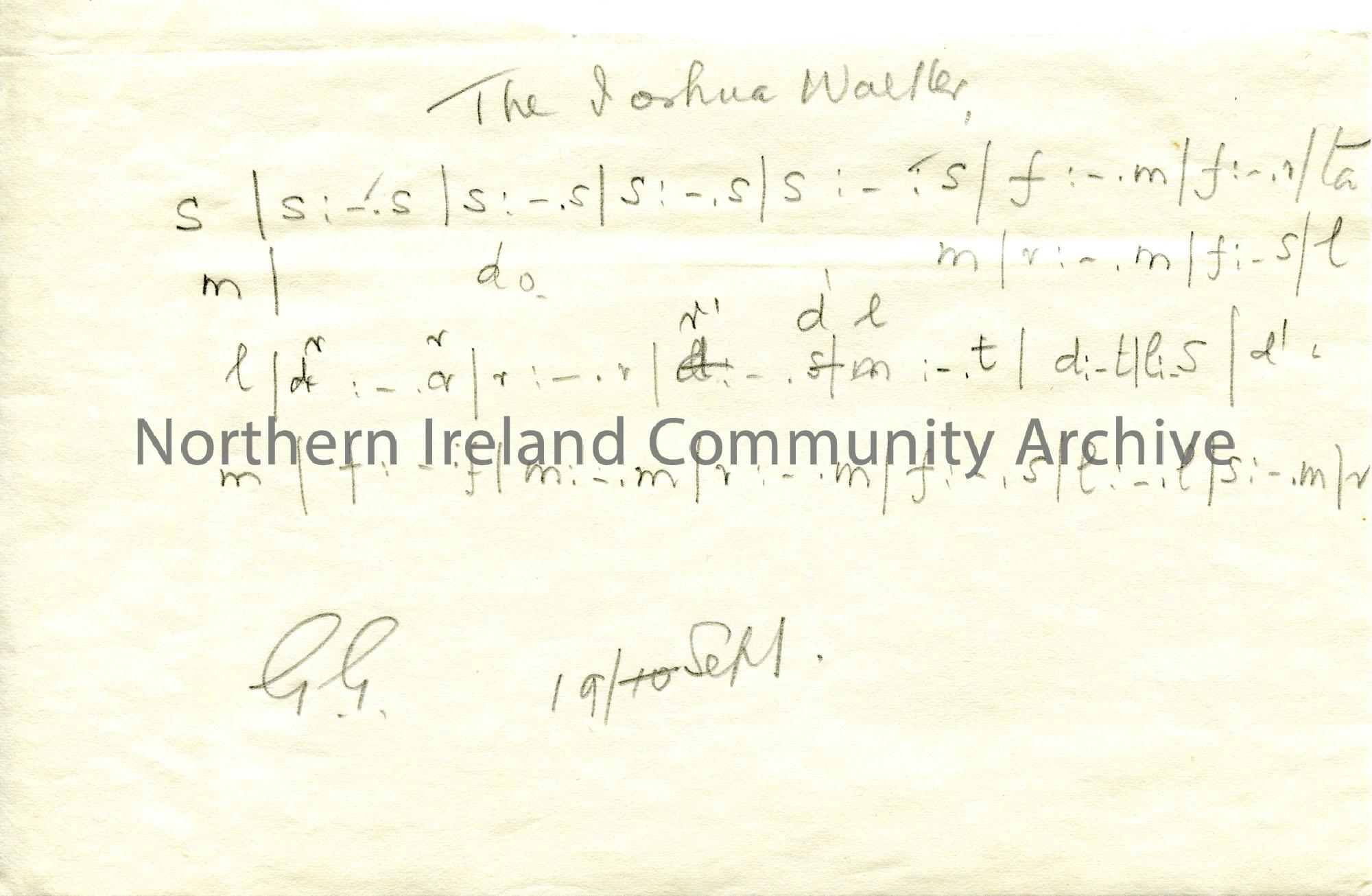 Handwritten tonic sol-fa notation to ‘The Joshua Walker’.