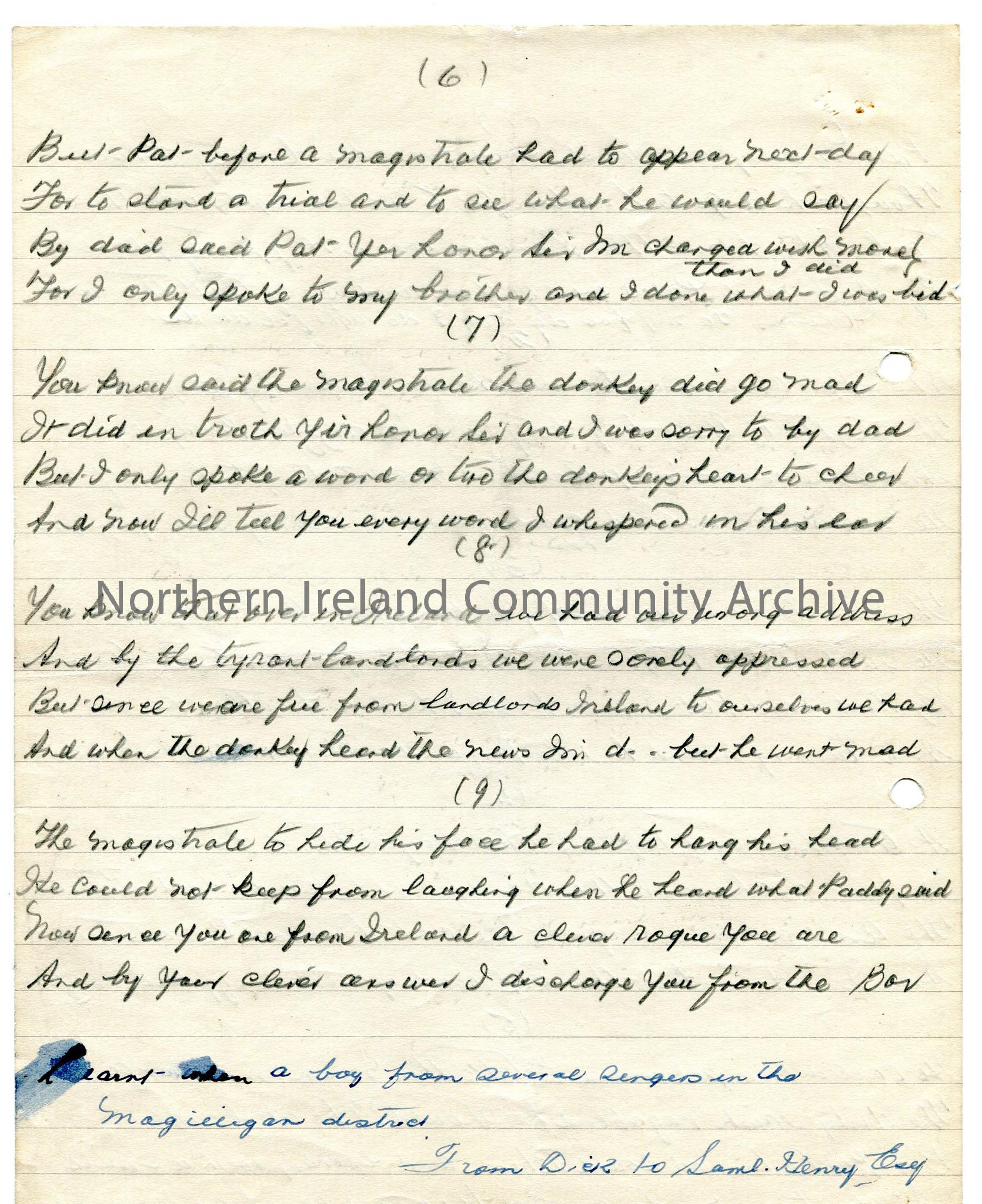 Handwritten untitled song – adventures of Clare man in London – img131