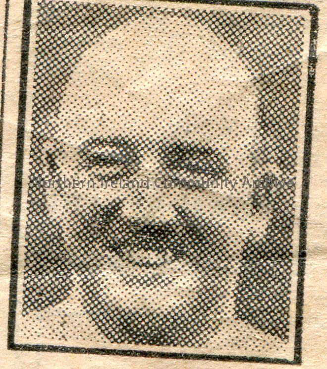 Head shot style photographic image cut out from a newspaper. Image is of a smiling man.