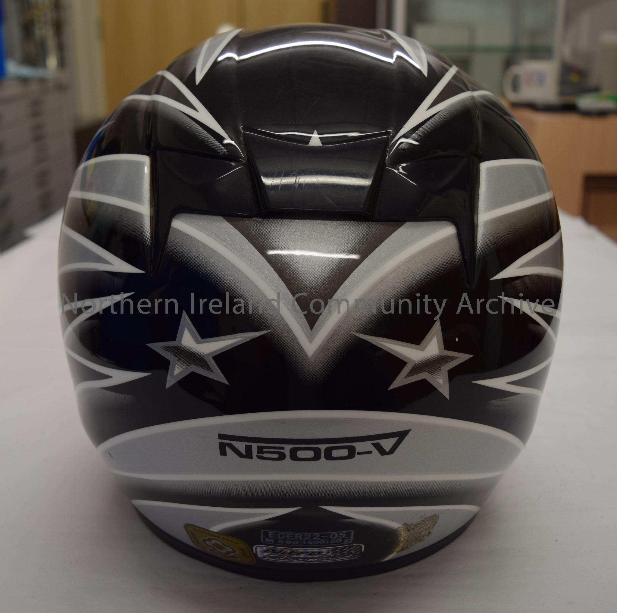 Helmet with Sammy Bentley written on it. Black with white and silver/grey art. Nitro Racing helmet. – 2016.33 (4)