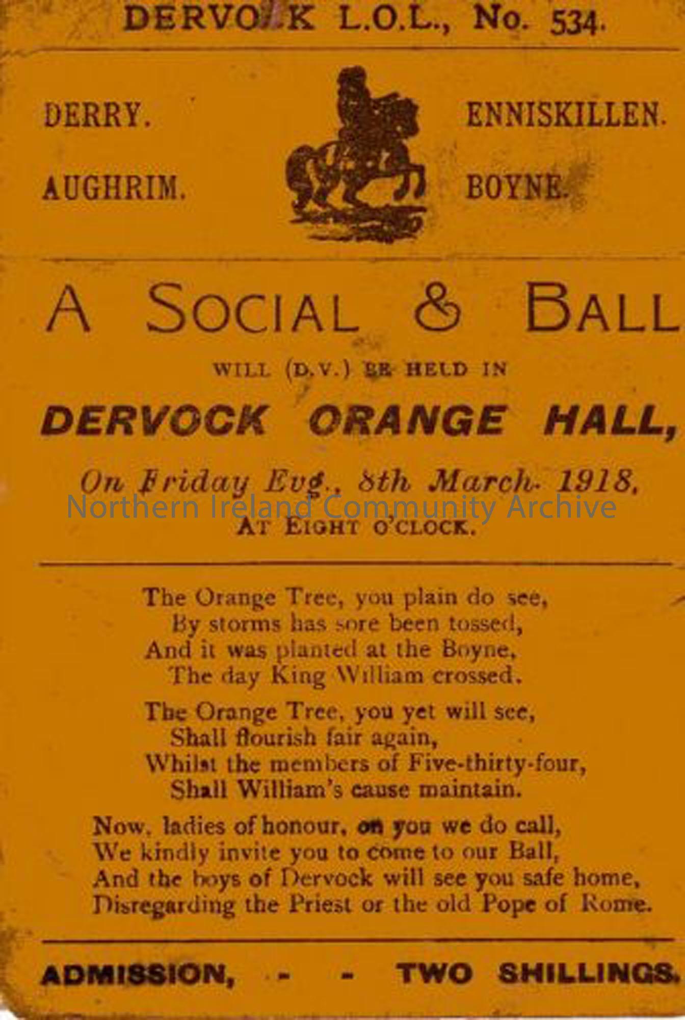 Leaflet for Dervock Orange Hall Social and Ball, 1918