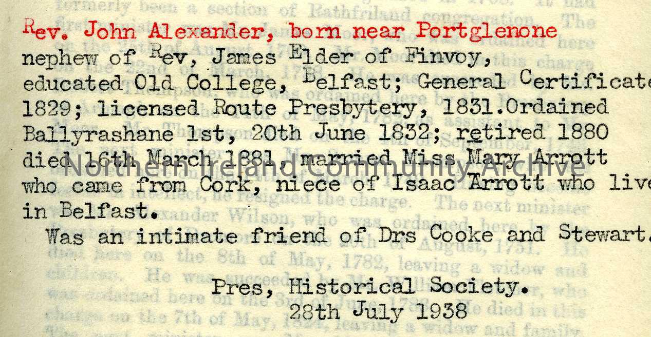 History of Congregations of the Presbyterian Church in Ireland – 498_1E