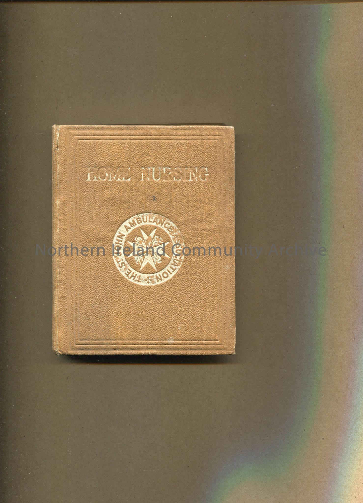 ‘Home Nursing’, The St. John’s Ambulance Association. Dorothy Walker, Sept, 1939 written on inside cover. Notes written in pencil on back pages. Brown…
