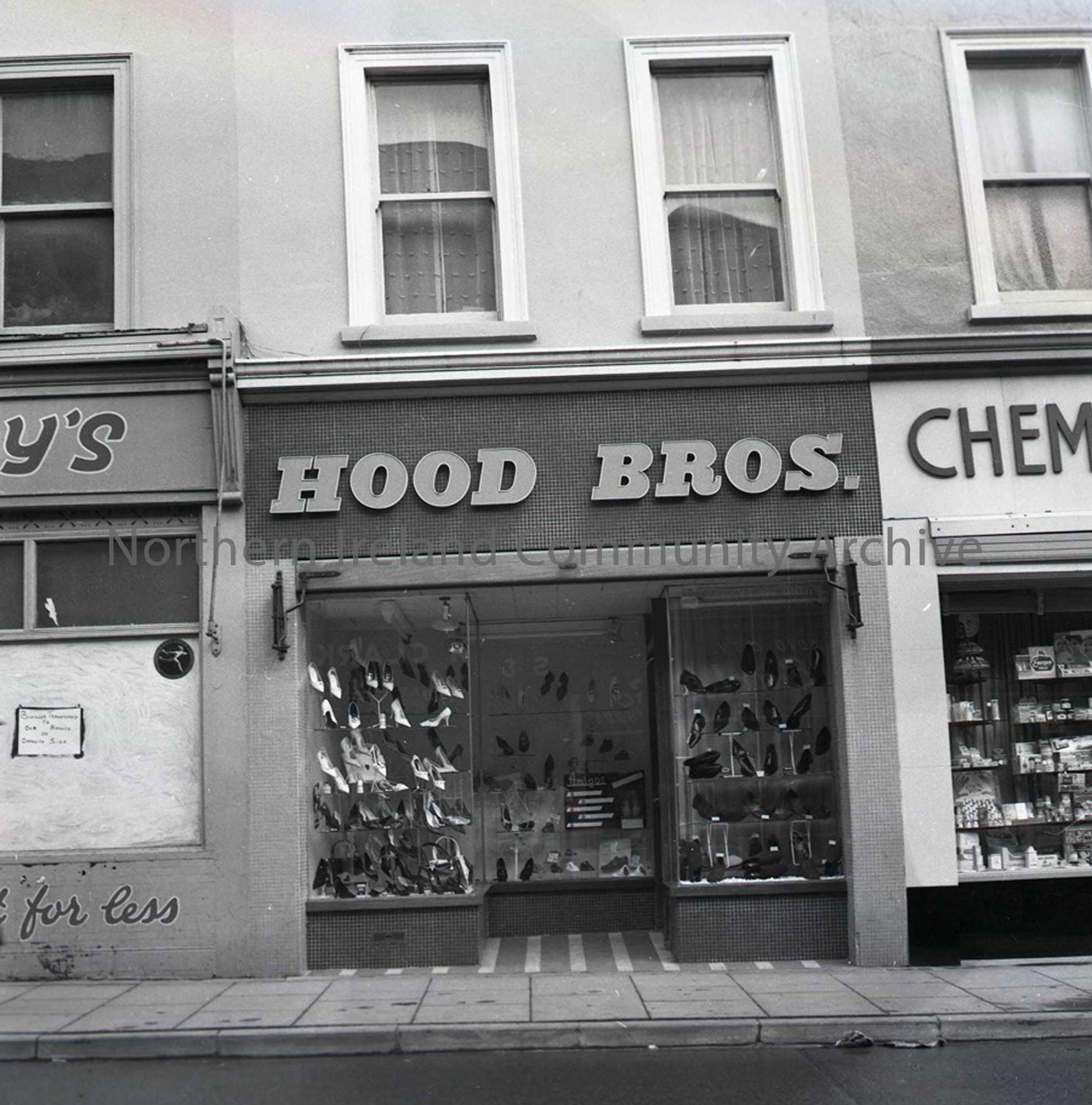 The exterior of Hood’s shoe shop in Kingsgate Street in 1963. This shop ran in conjunction with the main business in Bridge Street for a time. Courtesy of the Coleraine Chronicle