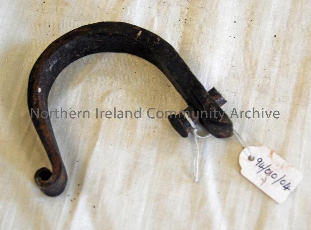 Iron crook for holding pots etc above fire from crane. Courtesy of Ballycastle Museum.