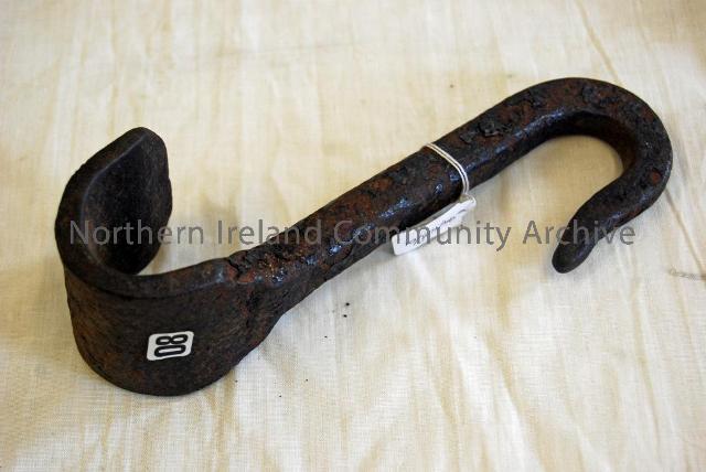 Iron crook for hanging pots, kettle etc over. Courtesy of Ballycastle Museum.