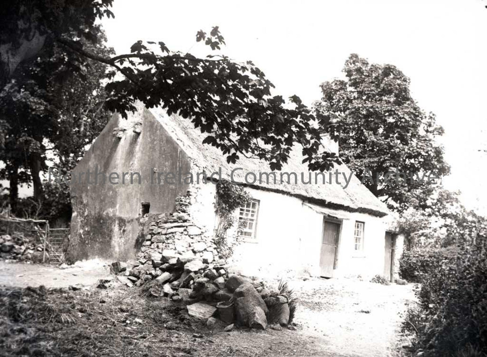 Whitewashed thatched cottage. No 49 on Nature Slides inventory. Whitewashed thatched cottage - purported to be that of Dan Morgan, who became a general in the American War of Independence. See also L:2010:1.122, L:2010:1.390 and L:2010:1.323